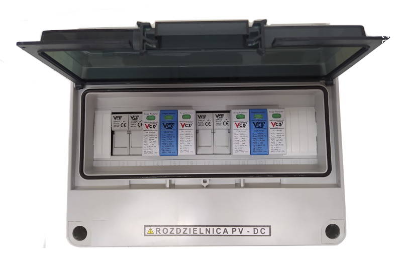 Rozdzielnica T1+T2 1000V DC do systemów fotowoltaicznych 2MPPT + składa się z obudowy IP 65 HERMETICA RN 1×12+1 IP65 o wymiarach 220x270x120 mm oraz zabezpieczeń APAR/VX/SUNTREE. Rozdzielnia PW2M+ sprawdzi się w przypadku prądu stałego, posiada certyfikat 1000 VDC. Obudowę wykonano z trwałych i solidnych materiałów, a jej ściany posiadają łatwowyłamywalne ściany, dzięki czemu łatwo poprowadzić dławnice kablowe. Rozdzielnica typ T1+T2 doskonale sprawdzi się do zabezpieczenia inwerterów sieciowych w przypadku połączenia instalacji z LPS